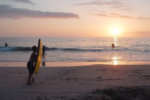 Hapuna Beach State Recreation Area is a large, 62 acre park with a sandy beach on the Big Island of Hawaii. Hapuna (meaning "spring" or "pool" in Hawaiian) is popular with residents and visitors. This is one of the few white sand beaches on the west coast of the Big Island. The others include Kua Bay (Manini'owali Beach), Kauna'oa Bay, known as Mauna Kea Beach, and Samuel M. Spencer Beach Park. It was named the Best Beach in America by Florida International University professor Stephen Leatherman, known as "Dr Beach", in 1993 and 2021. Hapuna beach has lifeguards, but can be hazardous during high surf conditions since the beach is not protected from the open ocean. The park has free admission for Hawaii residents and $5 for visitors, paved parking, pavilions, picnic areas, restrooms, and showers. Camping permits are available.